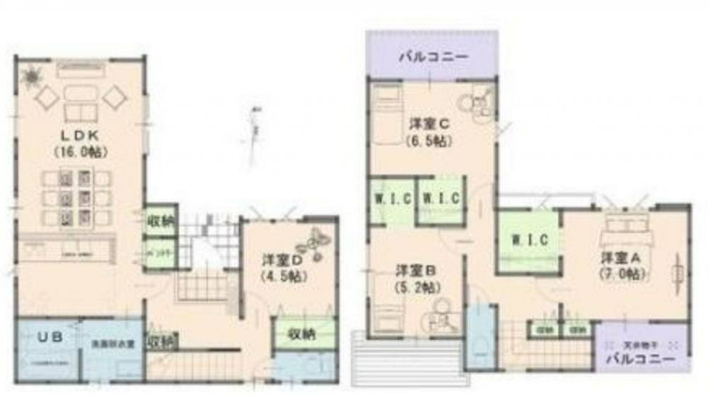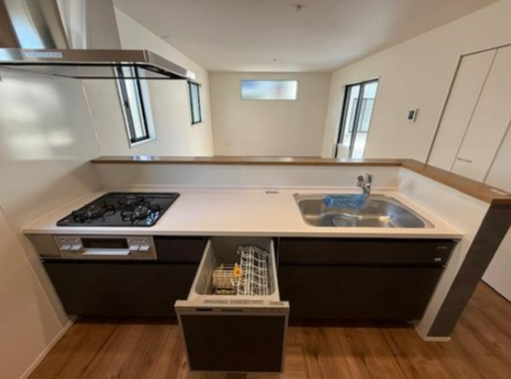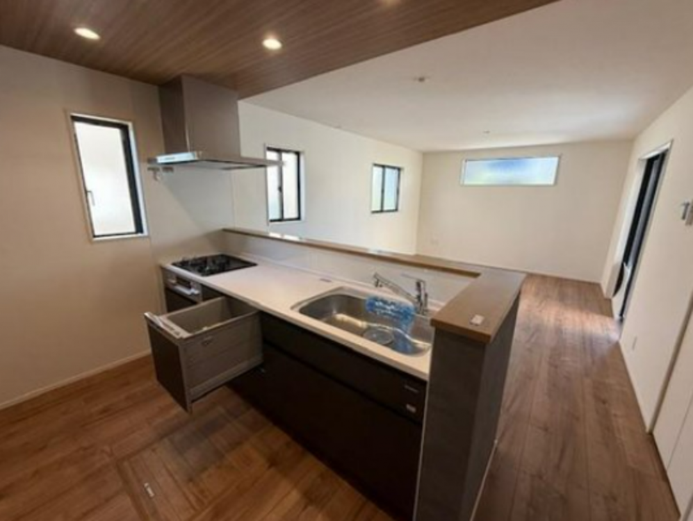- 側溝/システムキッチン/カウンターキッチン/食器洗浄乾燥機/給湯/追焚機能/トイレ2箇所/バス・トイレ別/温水洗浄便座/室内洗濯機置場/複層ガラス/ルーフバルコニー/3面バルコニー/24時間換気システム/収納スペース/ウォークインクローゼット/駐車場2台分/モニター付きインターホン