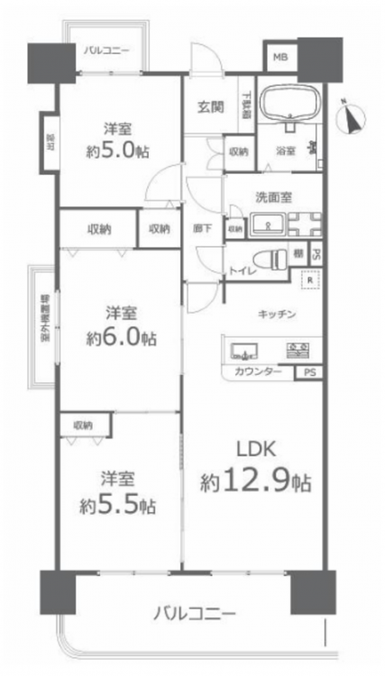 - システムキッチン/カウンターキッチン/バス・トイレ別/温水洗浄便座/洗面所/洗面台/シャンプードレッサー/フローリング/照明器具付き/2面バルコニー/エレベーター/宅配ボックス/火災警報器等設置済